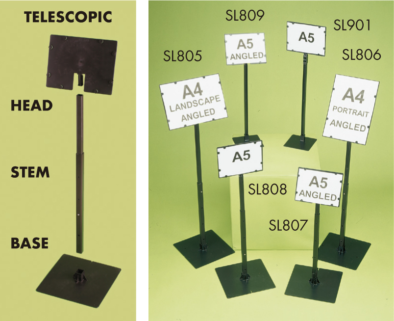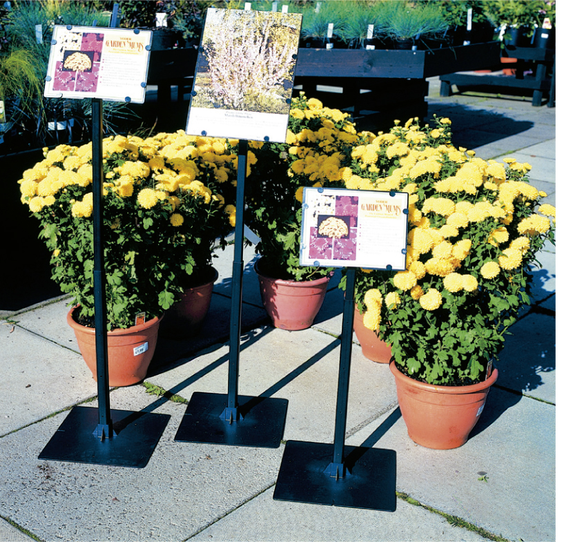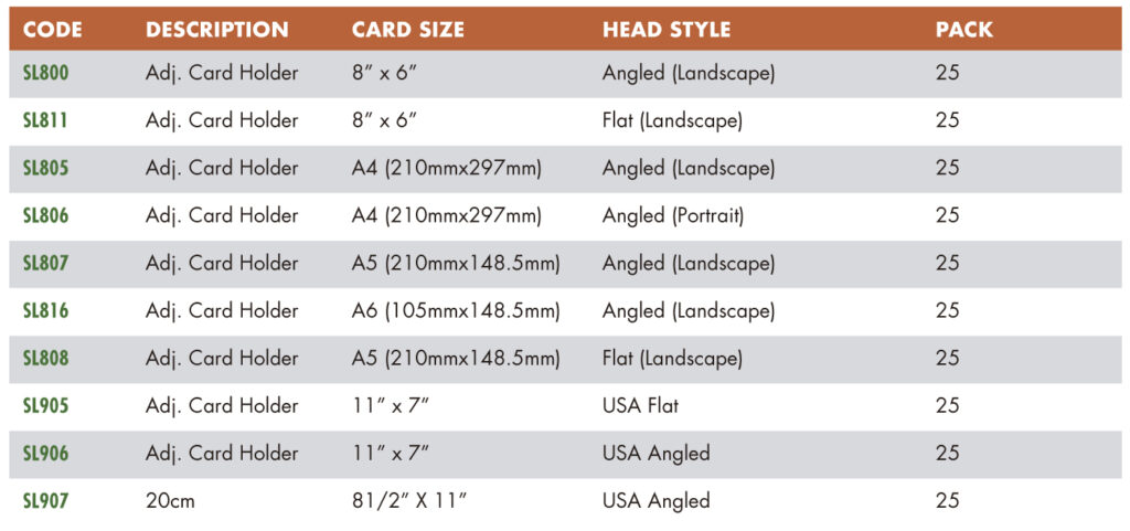 Con la opción de una cabeza plana de doble cara, de modo que se puedan sostener dos cartas, ouna cabeza angulada de un solo lado. Ocho botones sostienen la tarjeta de forma segura. Puede seratornillados o se pueden colocar macetas en su base cuadrada de 6 ”(15 cm).
